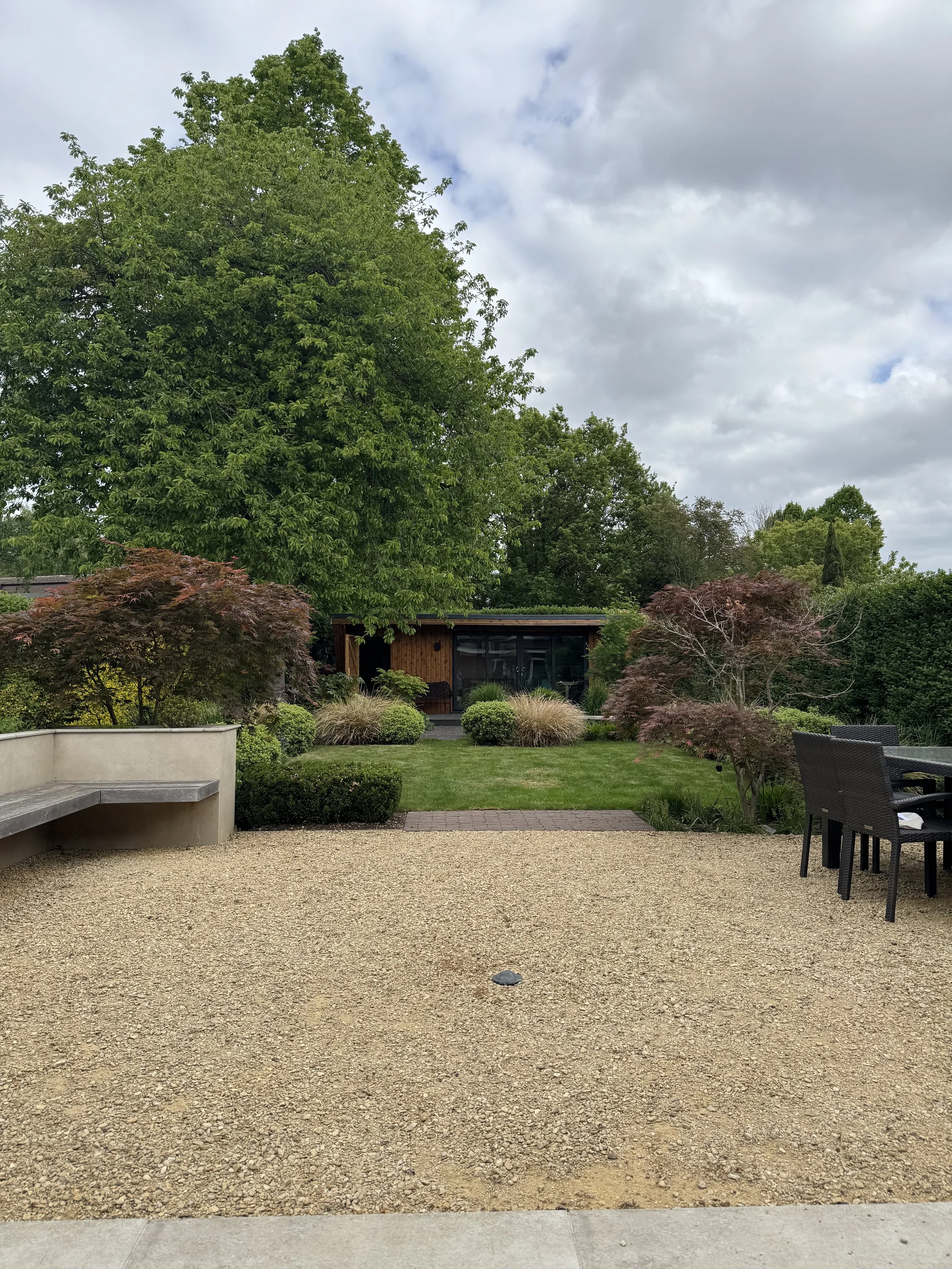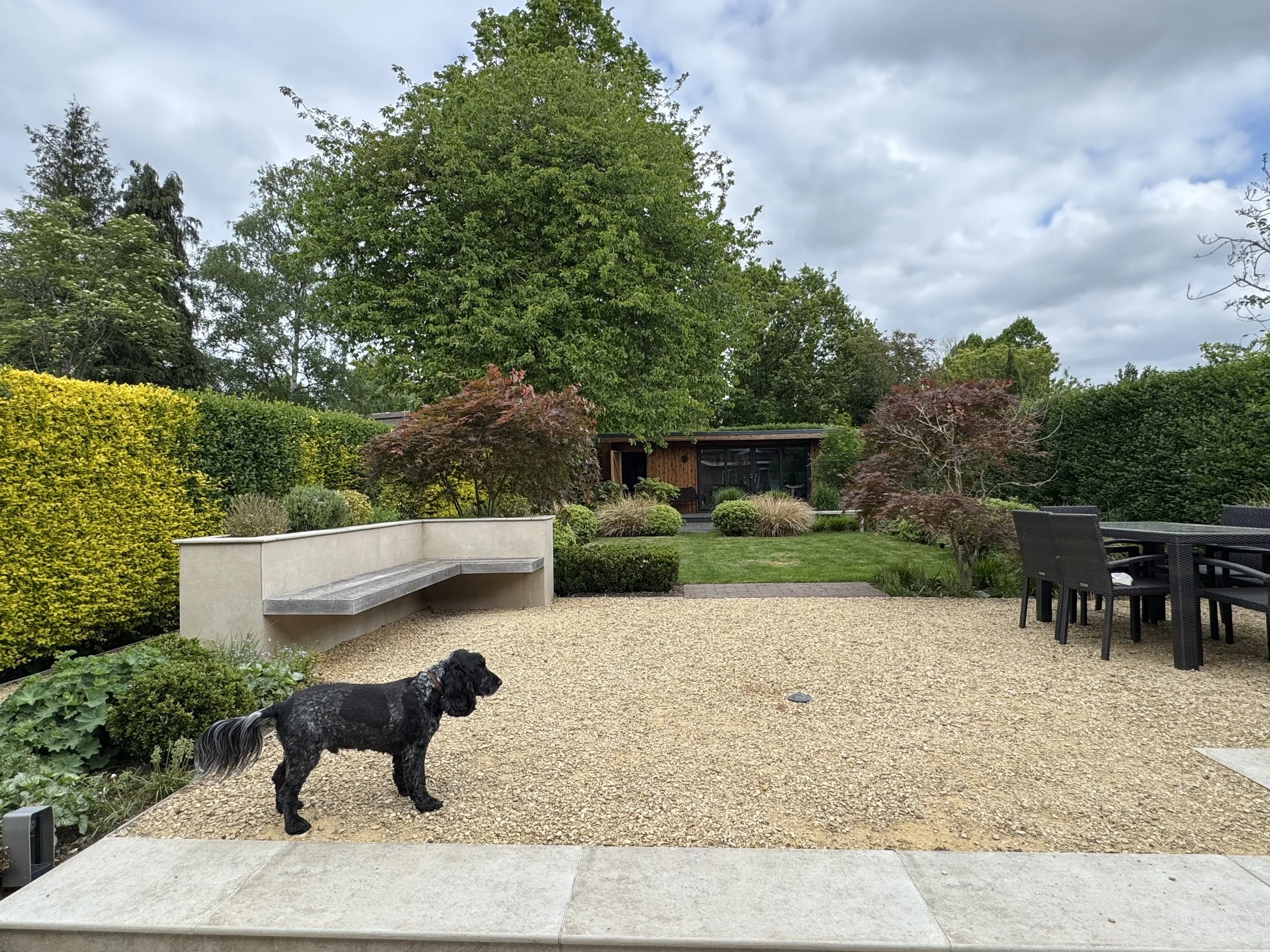 This garden needs to fulfil multiple roles, a family garden with adequate open space for their daughter aged 12 and new puppy to play in. Functional with easy access to the new work studio at the far end of the garden, to be accessible at all times of the year. Provide a sociable entertaining space nearer to the house and also be a place to relax and unwind. It is a long rectangular, North facing garden.